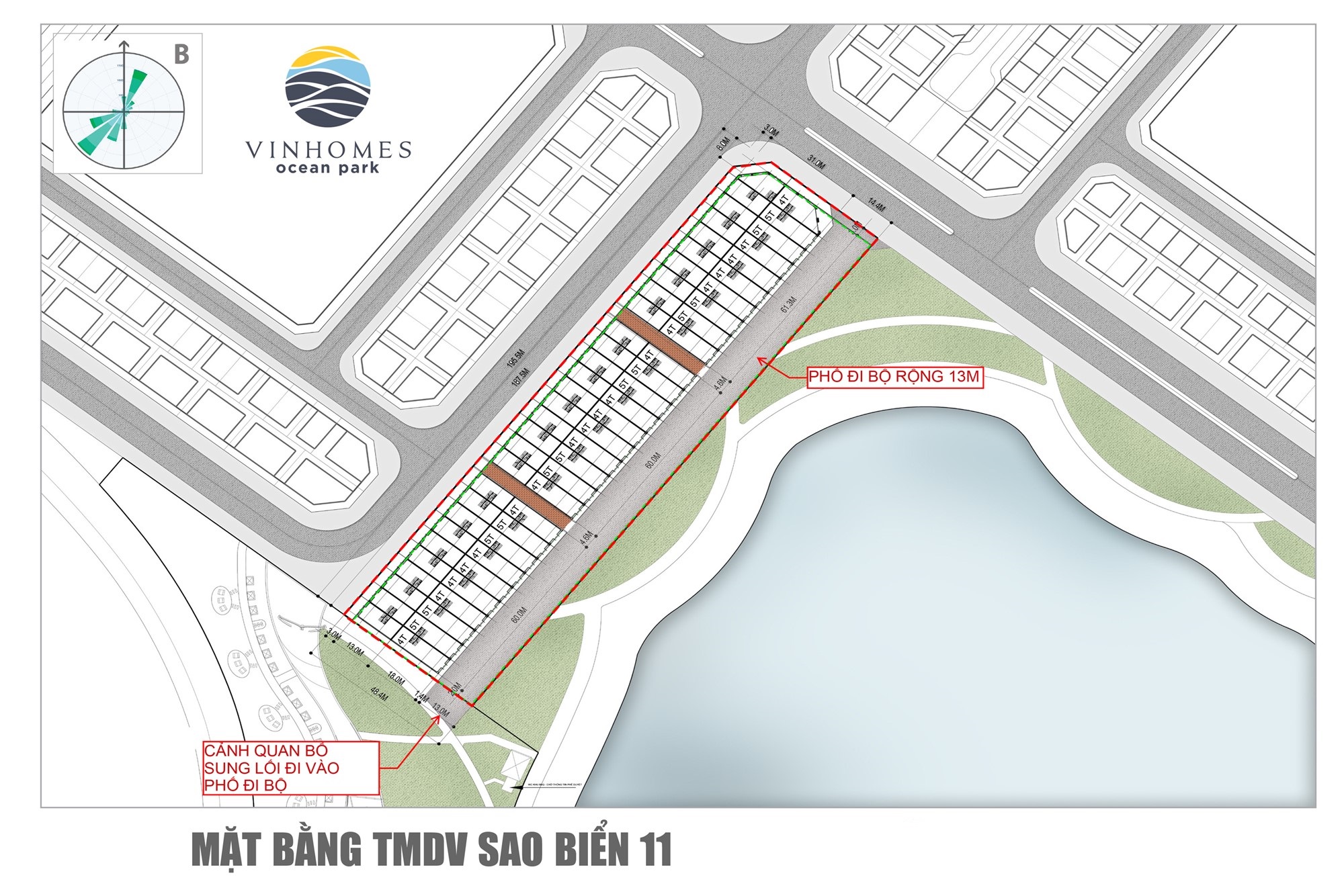 Shop Thương mại dịch vụ Sao biển là khu vực sở hữu 6 khu shop với 1 khu Shop được đánh giá là đẹp nhất dự án Vinhomes Ocean Park với vị trí đắc địa 1 bên là biển hồ nước mặt 6,1ha còn 1 bên là hồ lớn trung tâm rộng 24,5ha, ngay gần với 2 khu vực tập trung khách hàng liên tục đó là khu vực điểm nướng BBQ số 3 và trung tâm thương mại Vincom Mega Mall Ocean Park.