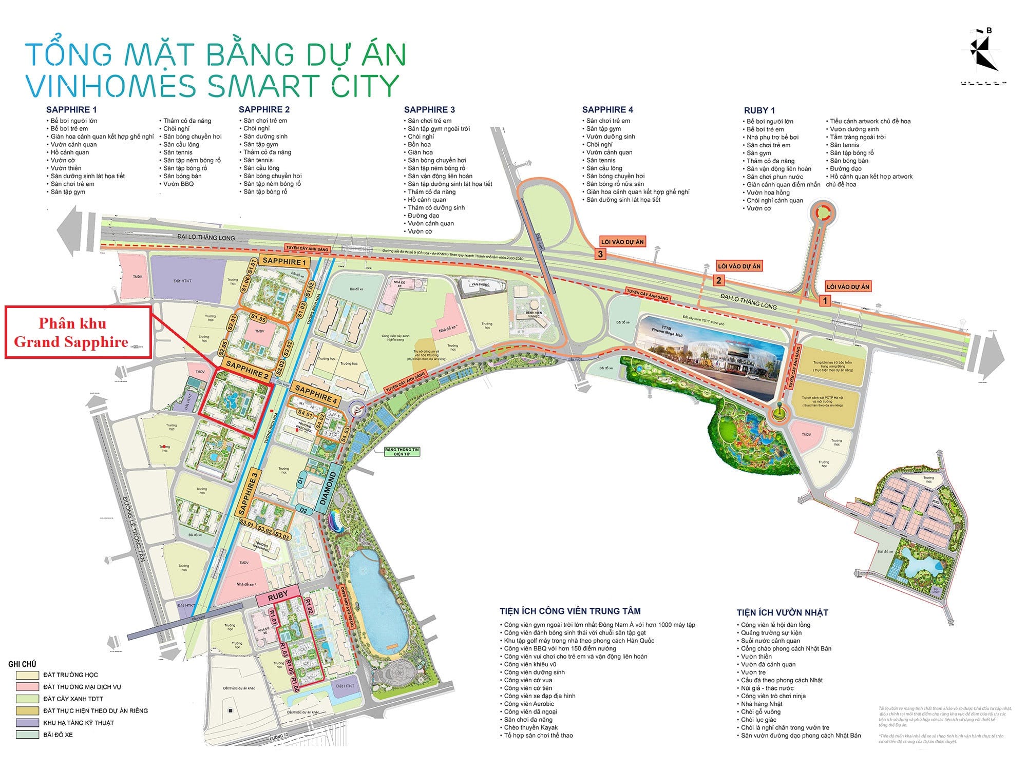Tiếp nối thành công của 4 phân khu “Sapphire” trước đây là Sapphire 1, Sapphire 2, Sapphire 3 và Sapphire 4, mới đây chủ đầu tư Vingroup tiếp tục cho ra mắt thị trường phân khu Sapphire thứ 5 mang tên The Grand Sapphire nằm tại khu vực tiếp giáp cầu vượt số 2 (Nối từ đường Lê Trọng Tấn vào khu đô thị Vinhomes Smart City).
