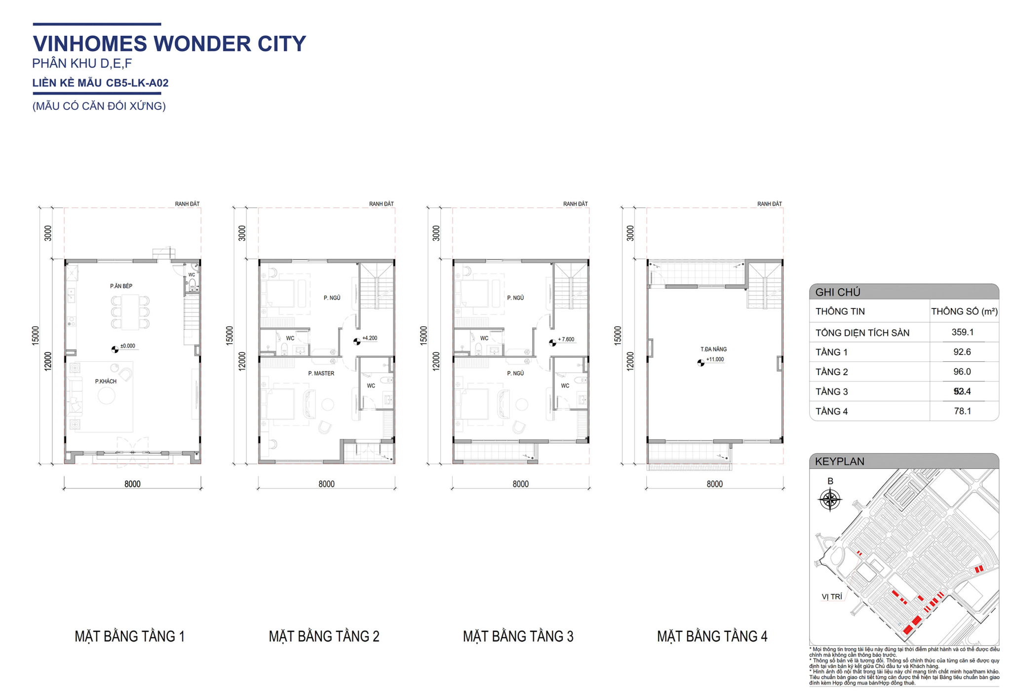 Mặt bằng điển hình liền kề 96m2 tại Vinhomes Wonder City