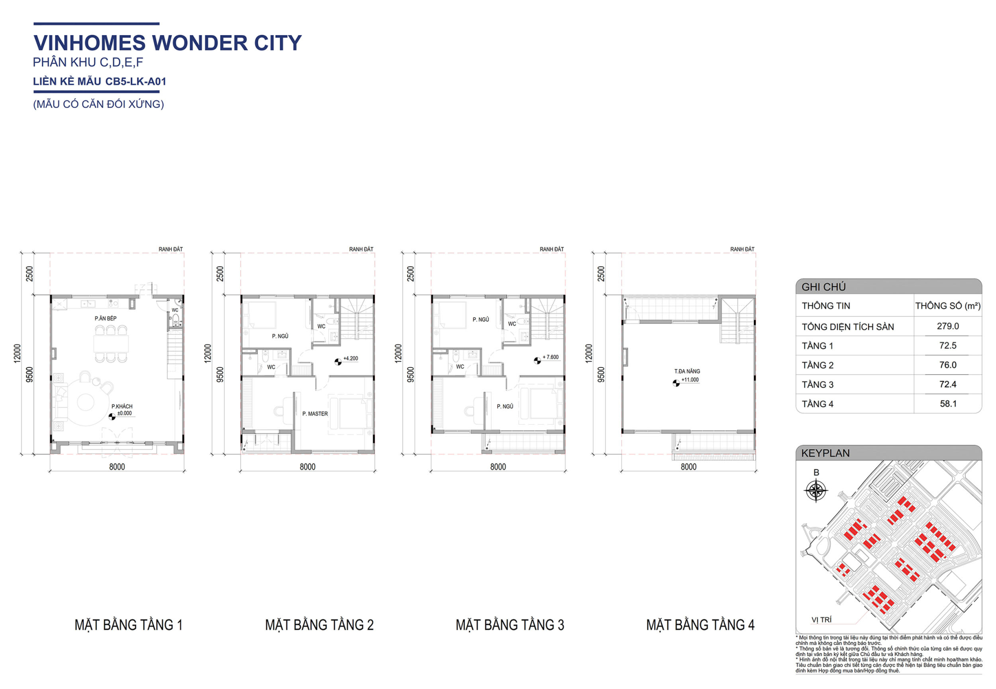 Mặt bằng điển hình liền kề 120m2 tại Vinhomes Wonder City